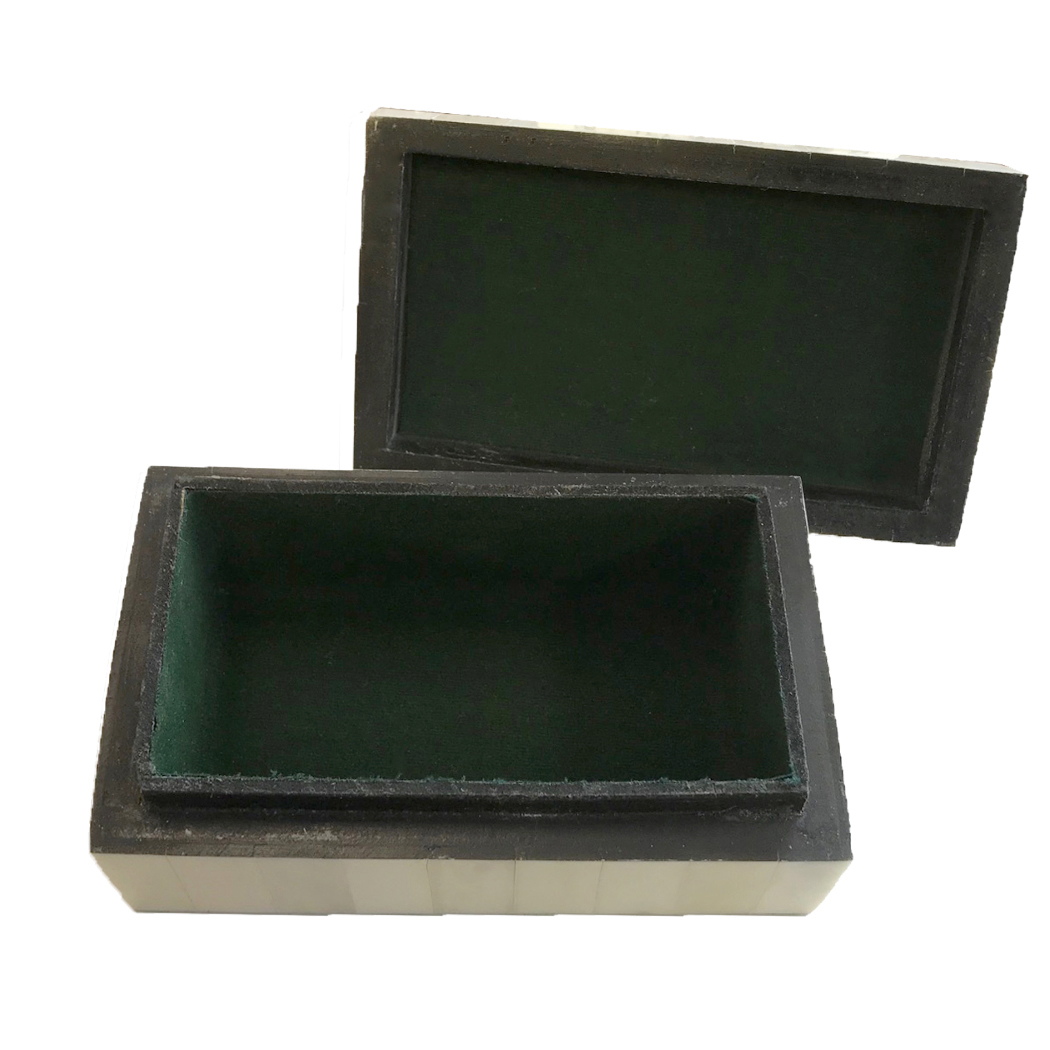 – Each box is handcrafted from ethically sourced ox bone tiles inlaid on a durable wood-composite base.
